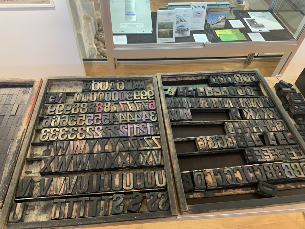 In der Ausstellung über das Emsland haben wir einen alten Film geguckt. Früher war hier alles Moor und den Pferden wurden breite Holzschuhe angezogen, damit sie auf dem nassen Boden laufen konnten. Große Maschinen haben das Moor trockengelegt und man suchte Menschen, die ins Emsland kommen wollten, um hier ein Dorf aufzubauen.