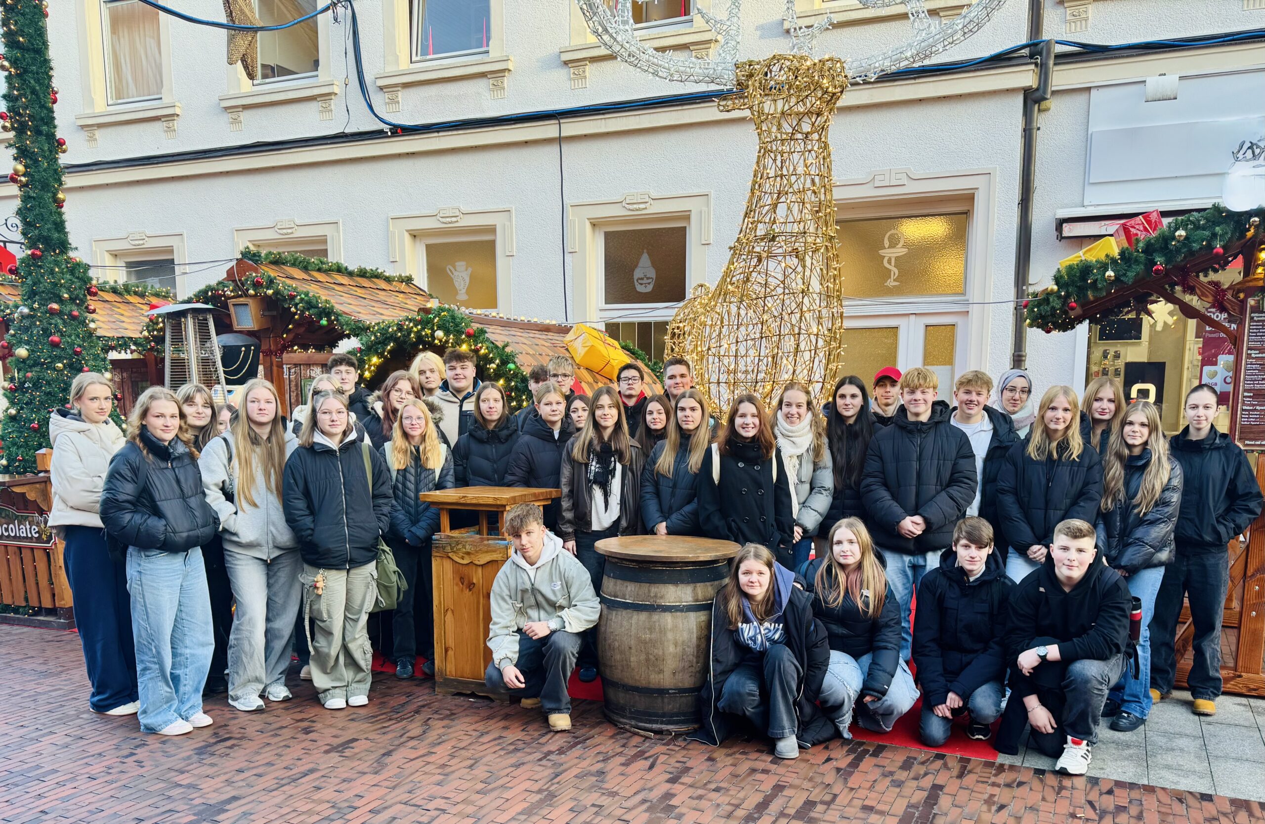 Am letzten Dienstag vor den Weihnachtsferien besuchten die Klassen 10R und 10H gemeinsam mit ihren Klassenlehrerinnen den Weihnachtsmarkt in Lingen. In festlicher Atmosphäre bot sich für alle eine willkommene Gelegenheit, den schulischen Alltag hinter sich zu lassen und die Vorweihnachtszeit zu genießen. In kleinen Gruppen erkundeten unsere Schülerinnen und Schüler die weihnachtlich geschmückte Innenstadt. Sie schlenderten über den Weihnachtsmarkt, entdeckten die vielfältigen Stände, genossen winterliche Spezialitäten und nutzten die Zeit, um letzte Weihnachtsgeschenke zu besorgen.
